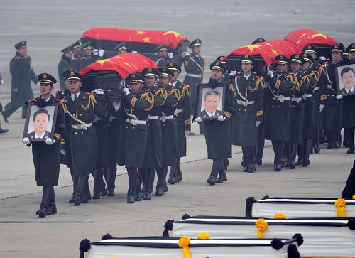 Express:Zhou Yongkang went to the airport to meet the Haiti earthquake victims of Chinese peacekeeping police coffin