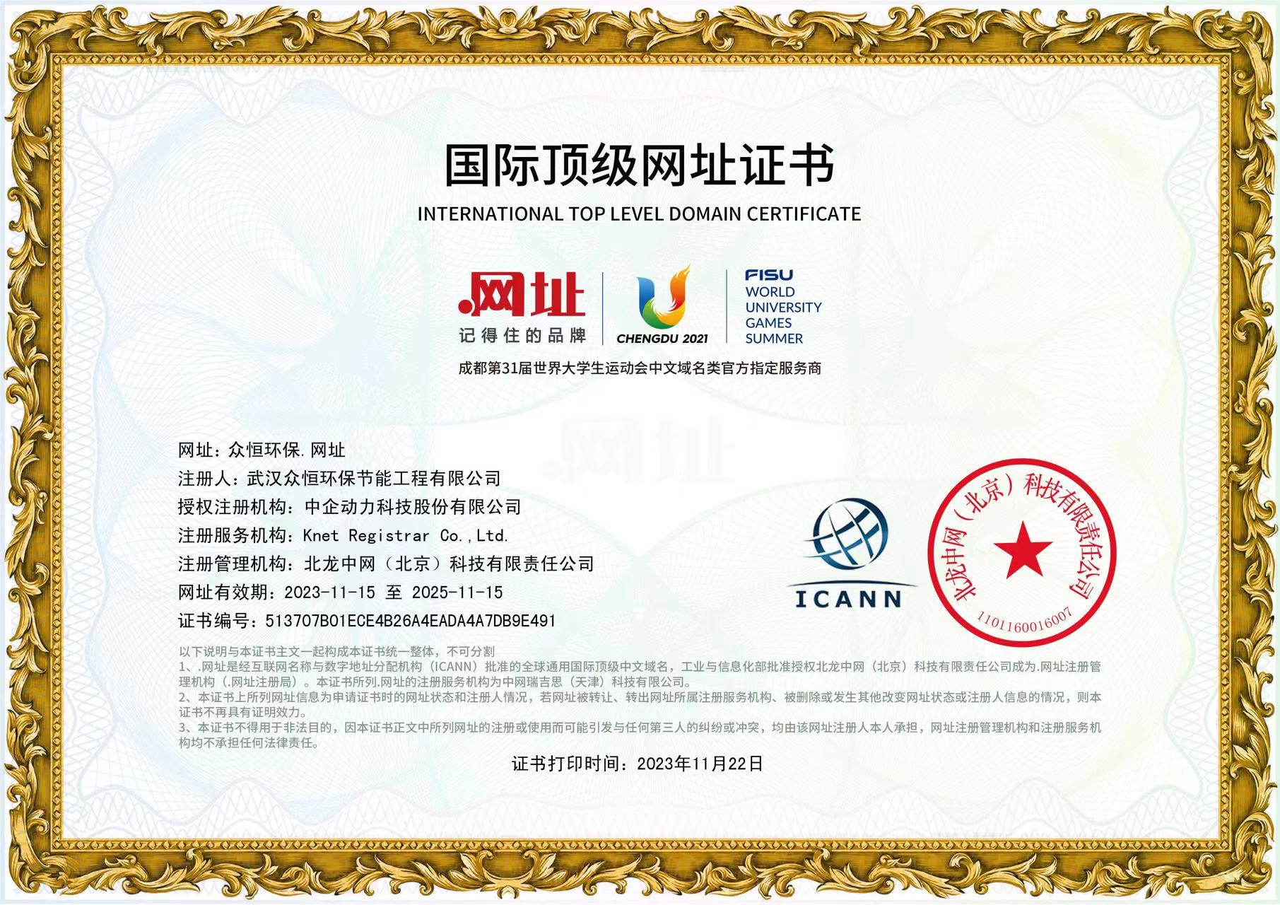 快訊 公司獲批“眾恒環(huán)!薄拔錆h眾恒”獲全球國際頂級中文網(wǎng)址稱(chēng)號!