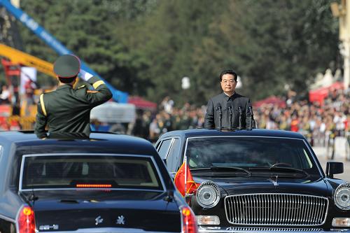 10月1日,首都各界慶祝中華人民共和國成立60周年大會(huì )在北京天安門(mén)廣場(chǎng)隆重舉行。這是中共中央總書(shū)記、國家主席、中央軍委主席胡錦濤檢閱受閱部隊。