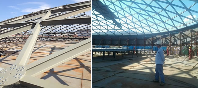二、大型網(wǎng)殼儲罐中鋼制網(wǎng)殼的特點(diǎn):