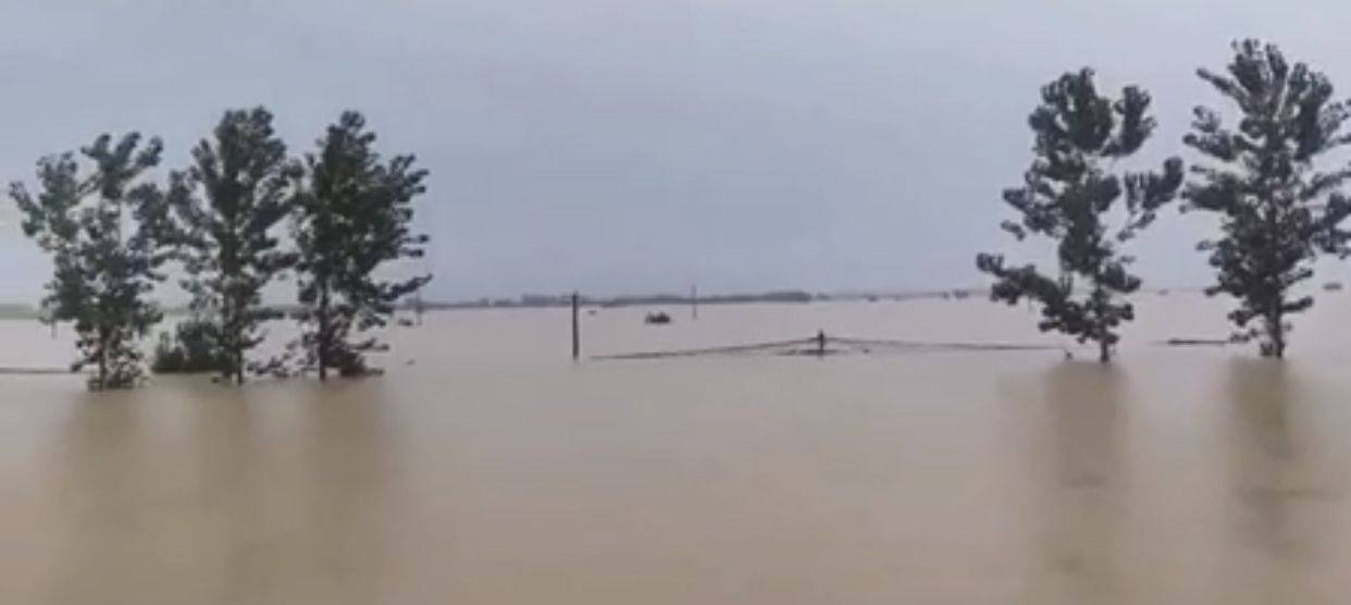 鄱陽(yáng)縣受災。受訪(fǎng)者供圖 連夜趕回鄱陽(yáng)縣救援 7月11日,江西潘陽(yáng)縣防汛將應急響應由2級提升至1級。 對陳艷濤一行人而言,這個(gè)消息突然又急切。因為大家7月10日剛在鄱陽(yáng)縣參與救援,轉移出了30多名受災人員,11日上午驅車(chē)趕往另一個(gè)受災地點(diǎn)江西省景德鎮,還沒(méi)有和當地對接,便接到了鄱陽(yáng)縣防汛提高應急響應級別的消息,于是一行人連夜又從景德鎮驅車(chē)回到了鄱陽(yáng)縣,駐扎在了縣里的一家賓館中。 7月12日早晨7點(diǎn)50分,一部分隊員剛吃完早飯,隊員還沒(méi)有下樓,便突然收到了鄱陽(yáng)縣蓮湖鄉的求救信息。 “蓮湖鄉(常住人口6萬(wàn)余人)現需緊急轉移全鄉群眾,目前進(jìn)出蓮湖島道路已斷,急需舟艇救援支持。請周邊隊伍聯(lián)系江鄉長(cháng)!标惼G濤說(shuō),接到信息后,隊伍立即集結出發(fā)救援。 短短的15分鐘,25人、6輛車(chē)拉著(zhù)六駕沖鋒舟已經(jīng)行駛在了路上。 鄉長(cháng)在電話(huà)中簡(jiǎn)單介紹了情況,蓮湖鄉共31個(gè)村,從6月8日就開(kāi)始疏散村內群眾,但仍然有很多人沒(méi)有出來(lái),大多是不愿離開(kāi)的老人。如今水位瘋漲,30個(gè)村基本上已全淹沒(méi),往鄉里走的公路沒(méi)了,唯一的路還在加固中,急需有船的救援隊參與搜救。 隊員們沿著(zhù)鄉長(cháng)給的地址一路導航往前開(kāi),被洪水淹沒(méi)的唯一一條公路已經(jīng)禁行。有熱心村民騎電動(dòng)車(chē)帶救援隊員們另找了一條路,但這條路正由工程車(chē)鋪墊石沙加固!昂樗恍r(shí)就漲一米,就算半小時(shí)都耽誤不起!甭愤吘褪呛樗,救援隊隊員們立即卸下四艘沖鋒舟下水,留兩艘在這里等著(zhù)修路,其余人渡江去鄉里。
